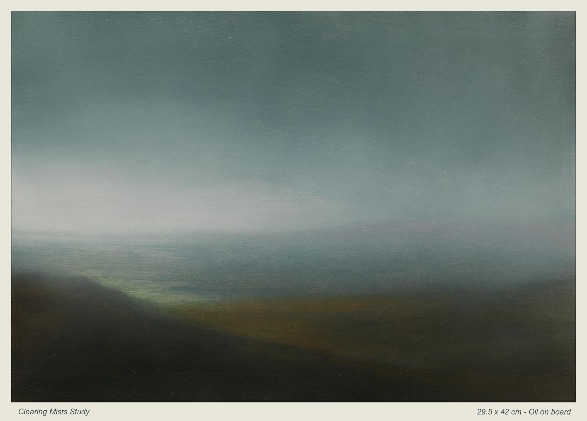 These landscapes are often devoid of detail yet reveal an expanse of space just beyond—a visual barrier where viewers are invited to peer into the infinite. They are wild, empty places, stark and haunting, with a quiet, ominous beauty. Working from life on the open moor, I depict a twilight, liminal world, where the vivid reality of place resonates as much in its absences as in its presence.